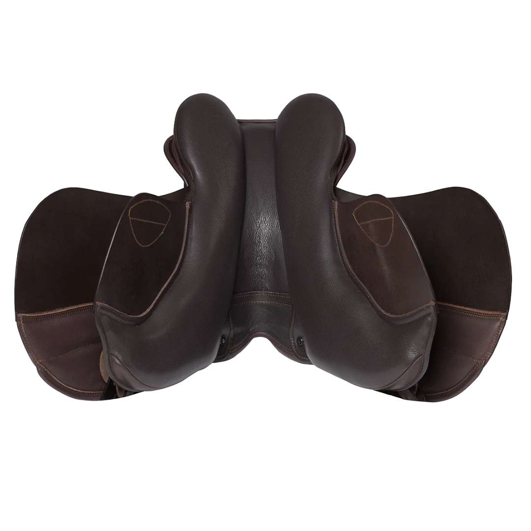 The seat is offered in two depths: MD (medium deep), ideal for those seeking a more centered position, and MF (medium flat), designed for riders who prefer greater freedom of movement. The design of the blocks, which aren’t stitched at the front, allows the sweatflaps to flex and the panels to follow the horse’s shoulders without restricting its movement.