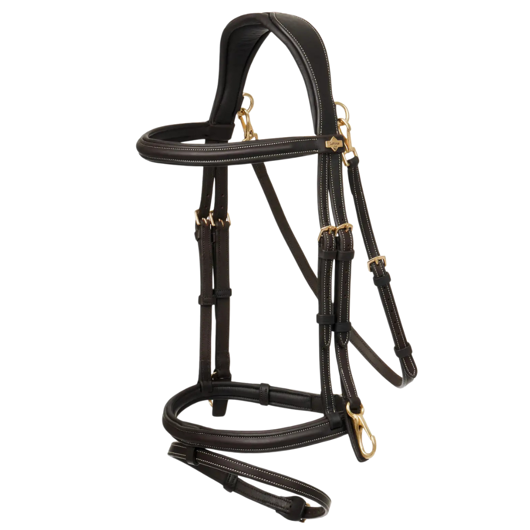 This elegant dressage bridle is carefully crafted from the finest English Sedgwick leather and features an anatomic headpiece to offer maximum pressure relief thanks to its cut back anatomical design in conjunction with generous lightweight padding.