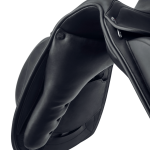 The panels have a unique shape, completely different from the classical model. At the front, its innovative ergonomic shape perfectly fits both muscular backs and pronounced withers, combining in a single panel the freedom of the shoulders of an SL and the support of a traditional panel. Thanks to a larger surface laying on the trapezius area and thinner edges, this panel doesn’t limit the freedom of movement of the shoulders and, at the same time, helps the balance of the saddle. Thanks to panels with gusset will also be possible to request additional flocking not only in the rear area but also in the frontal one, in case of particularly prominent withers or exposed spines.