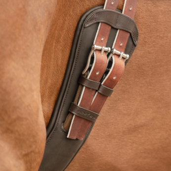 Its ingenious and exclusive system of elastic rings offers perfect girth pressure distribution, eliminates the feeling of pressure and the complaints of the horse when being girthed. Its special design allows the horse to expand its chest when needed during exercise. The elastic rings expand and contract with the rib cage, maintaining a uniform tension.