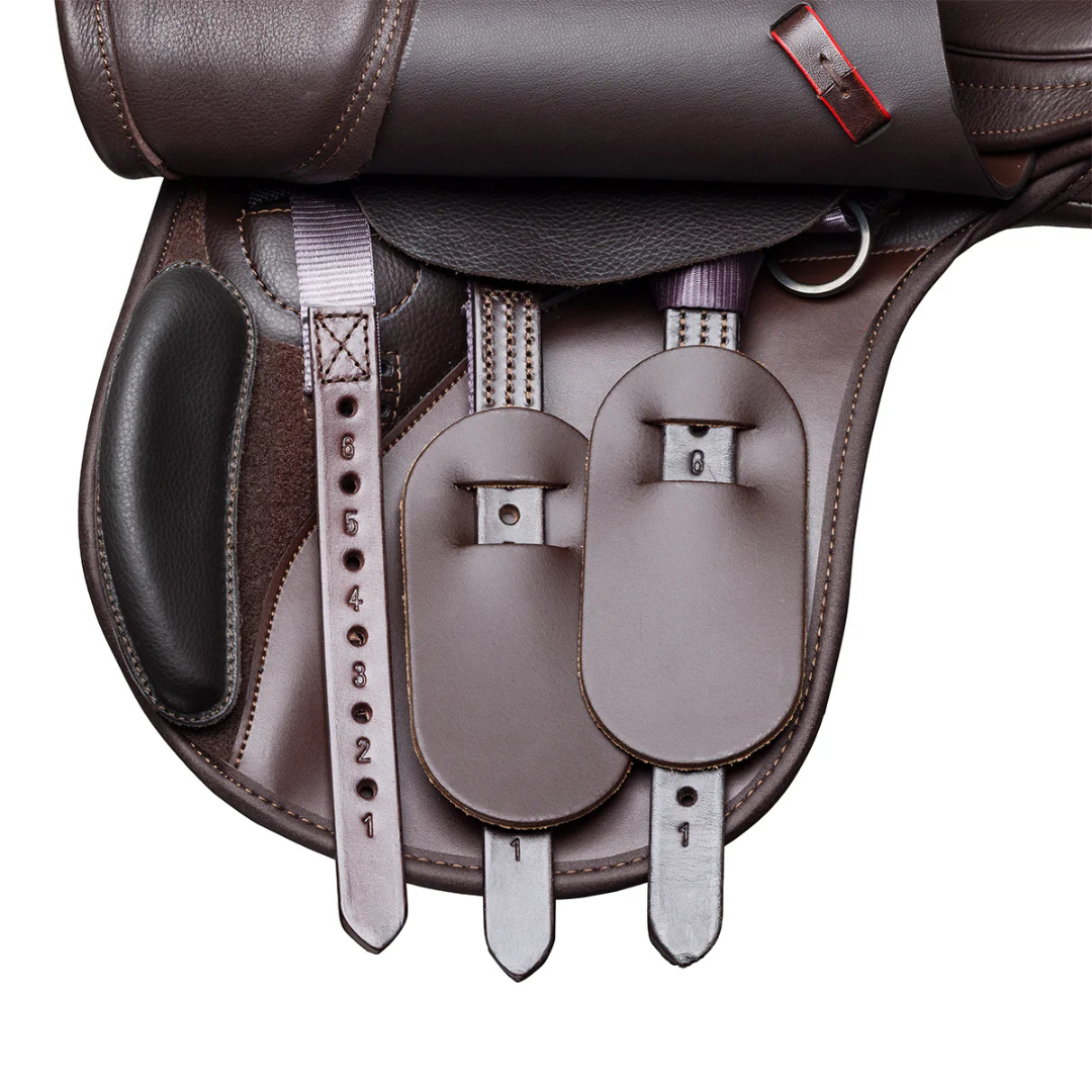 • A secure seat with a lower cantle doesn’t restrict the jumping position and allows you to maintain your centre of balance over the fence