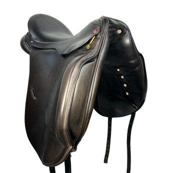 The Kur Dressage is a long standing model. It features a lower cantle, giving a flatter seat than most dressage saddles which allows the rider more freedom in the seat. This feature can be a very useful when room is at a premium and the lower cantle gives a better all round cosmetic balance. Also a popular choice for new dressage riders who are used to more flatter seated saddles. This saddle is also suitable for use as a show saddle.