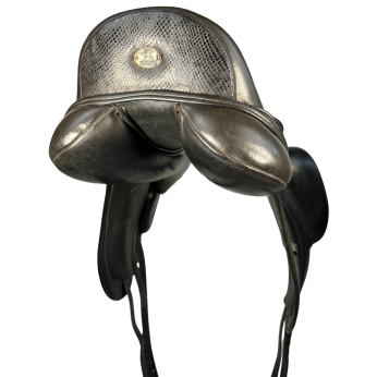 The Kur Dressage is a long standing model. It features a lower cantle, giving a flatter seat than most dressage saddles which allows the rider more freedom in the seat. This feature can be a very useful when room is at a premium and the lower cantle gives a better all round cosmetic balance. Also a popular choice for new dressage riders who are used to more flatter seated saddles. This saddle is also suitable for use as a show saddle.