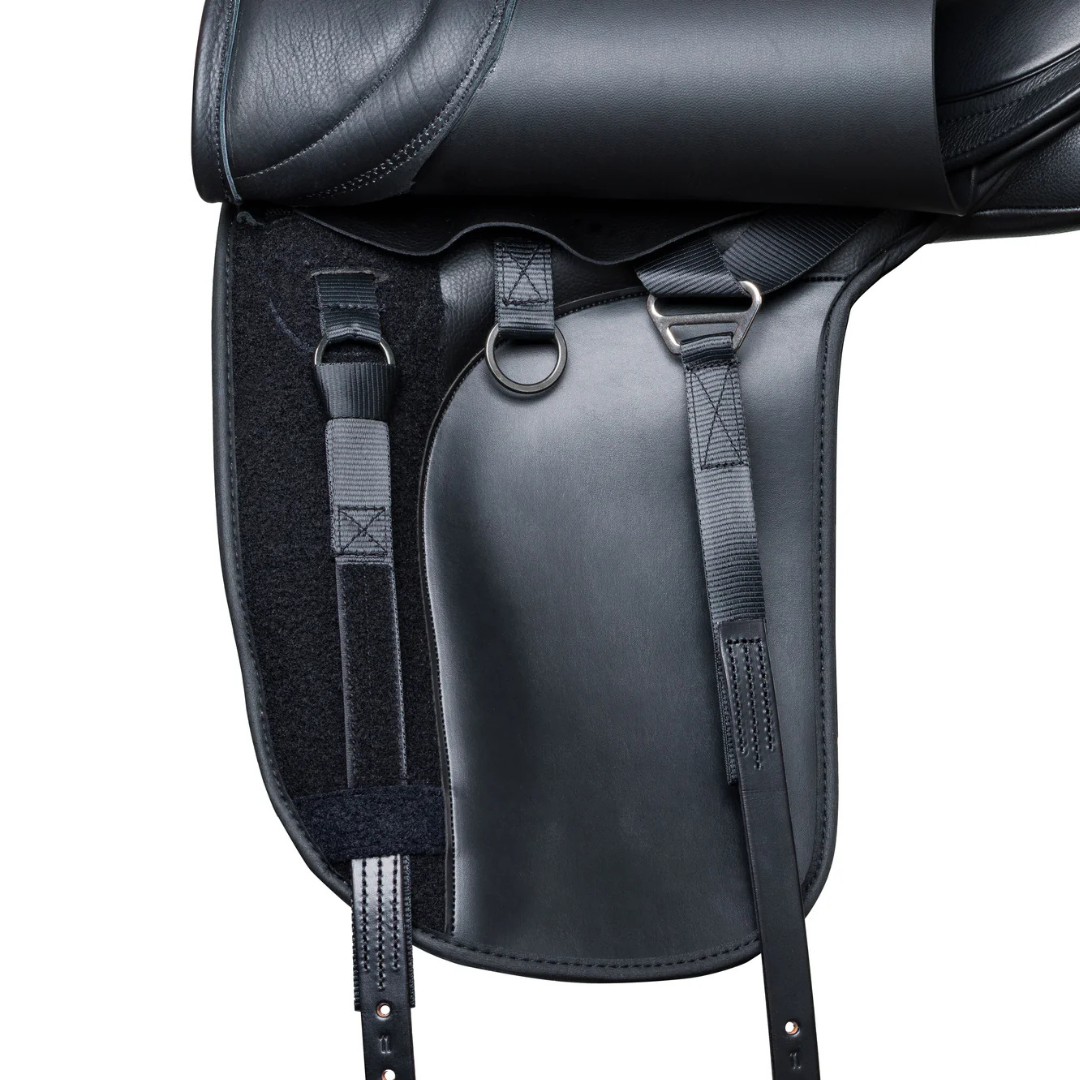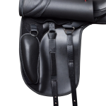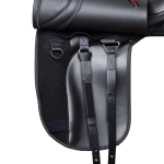The dressage-specific seat and moveable under-flap thigh block combine to help you maintain a perfectly balanced and supported dressage position. The panel design ensures a close rider contact and comfort for your horse.