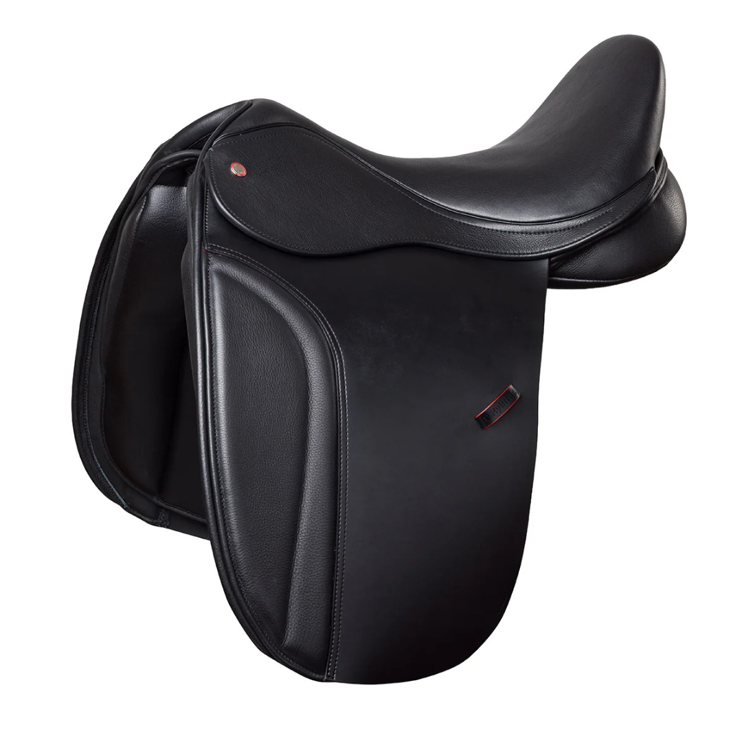 The dressage-specific seat and moveable under-flap thigh block combine to help you maintain a perfectly balanced and supported dressage position. The panel design ensures a close rider contact and comfort for your horse.